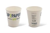 De Cup2paper is een papieren beker met een biologische binnenkant (PLA-coating) en is volledig recyclebaar.