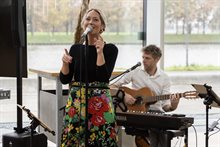 “Ik kan het niet alleen...”, zingt Lott van de band Lott and friends. In de zaal van het LEF Future Center van Rijkswaterstaat in Utrecht neuriën bezoekers het bekende nummer van De Dijk zachtjes mee. Ruim 70 mensen waren aanwezig tijdens de jaarlijkse VANG Buitenshuis Inspiratiedag met het thema: ‘Bedrijfsafval, daar zit muziek in!’