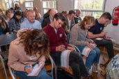 Na de gezellige lunch, waarvan de overgebleven broodjes naar daklozen in Amersfoort gaat, gaan de bezoekers uiteen in groepen voor de deelsessies.