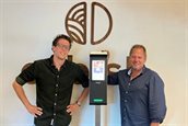 Olaf van der Veen (Orbisk) en Ricardo Eshuis (SVH) met het intelligente waste-apparaat.