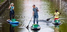 Nog de hele maand september 2023 kun je gratis suppen in de Haagse grachten. Daar staat wel iets tegenover: wie een gratis sup-board leent, gaat tijdens zijn rondje op het water ook zwerfafval opvissen.