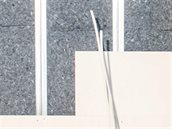 gipsplaten. De circulaire wand is vrijwel identiek aan de oude wand. Het enige verschil is dat de hergebruikte platen horizontaal worden gemonteerd in plaats van verticaal. De afmetingen van de hergebruikte platen zijn namelijk kleiner, omdat ze uit een gebouw zijn gezaagd.
